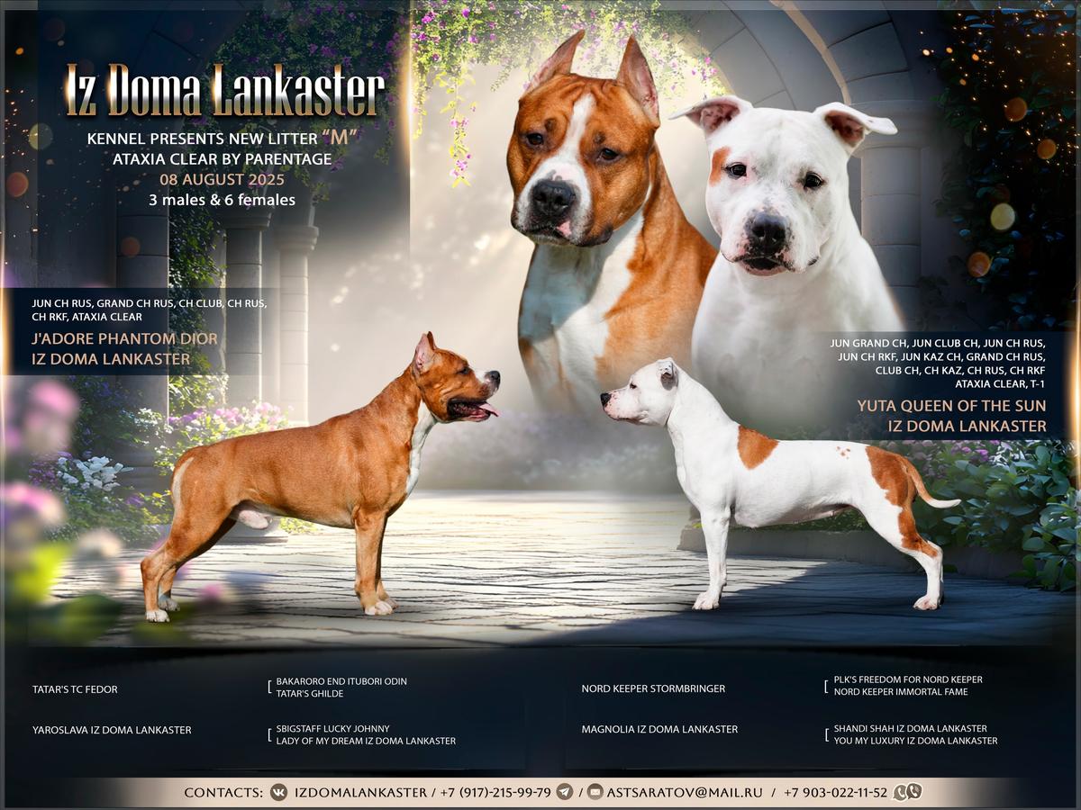 JCh Rus, Ch RKF, CW Jador Phantom Dior Iz Doma Lankaster 2016 | T1JCh.Rus, Ch.Rus,Int, MltCh., VCh, PrCh. Tatar's TC Fedor T1 2010 | INTCH,MCH Bakaroro Itubori Odin 1997 |