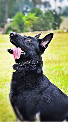 He does look like he is choking. Even though he isn't he does look like it though. He looks so attentive. Maybe my girl should be wearing her pinch collar more often. I don't get that look of what do you want me to do next, very often. Crap, I can't even get her to bring a ball back. And, sometimes she will drop it, give me that look from the top of the hill, to hurl another one. I think I would faint and die if she actually brought a ball back to me to throw again. I think it is because she doesn't like to chase balls, she likes to catch them in mid air.