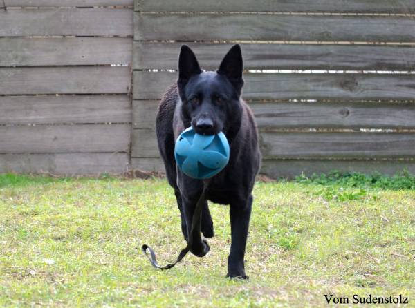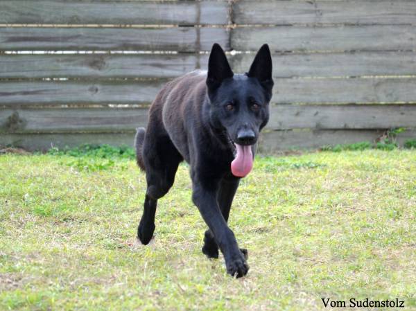 The last of our DDR dogs. She is not pure DDR as they were years ago, but I truely believe this is what the old DDR dogs were like. She is very aloof, confident in herself and her surroundings and so bonded to us. Very protective of the humans SHE owns. We do NOT own her, she owns us!