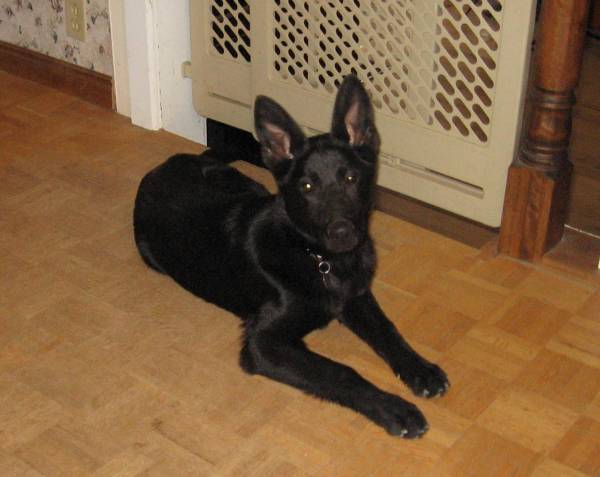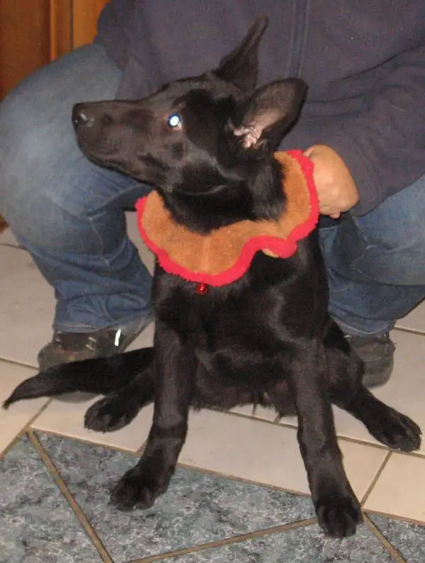 I really should get updated pictures. They change SO fast at this age! These pics are 2 weeks old and already now she has both ears up most of the time, and is getting in her adult coat: a lovely, shiny ruff of hair around her neck and shoulders, and a large swathe down the middle of her back. I've also had to make her collar bigger not once, but twice!